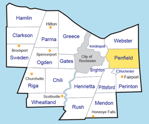 The Monroe County Sheriff’s Department serves the police needs here in Penfield. There is a Volunteer Emergency Ambulance system and Penfield Volunteer Fire Company covers most of the community, with a few areas lying under the protection of the Webster Fire Department. Penfield Public Library is located at 1985 Baird Road and is known for presenting a large catalog of activities for all ages (585) 340-88720. Penfield Library